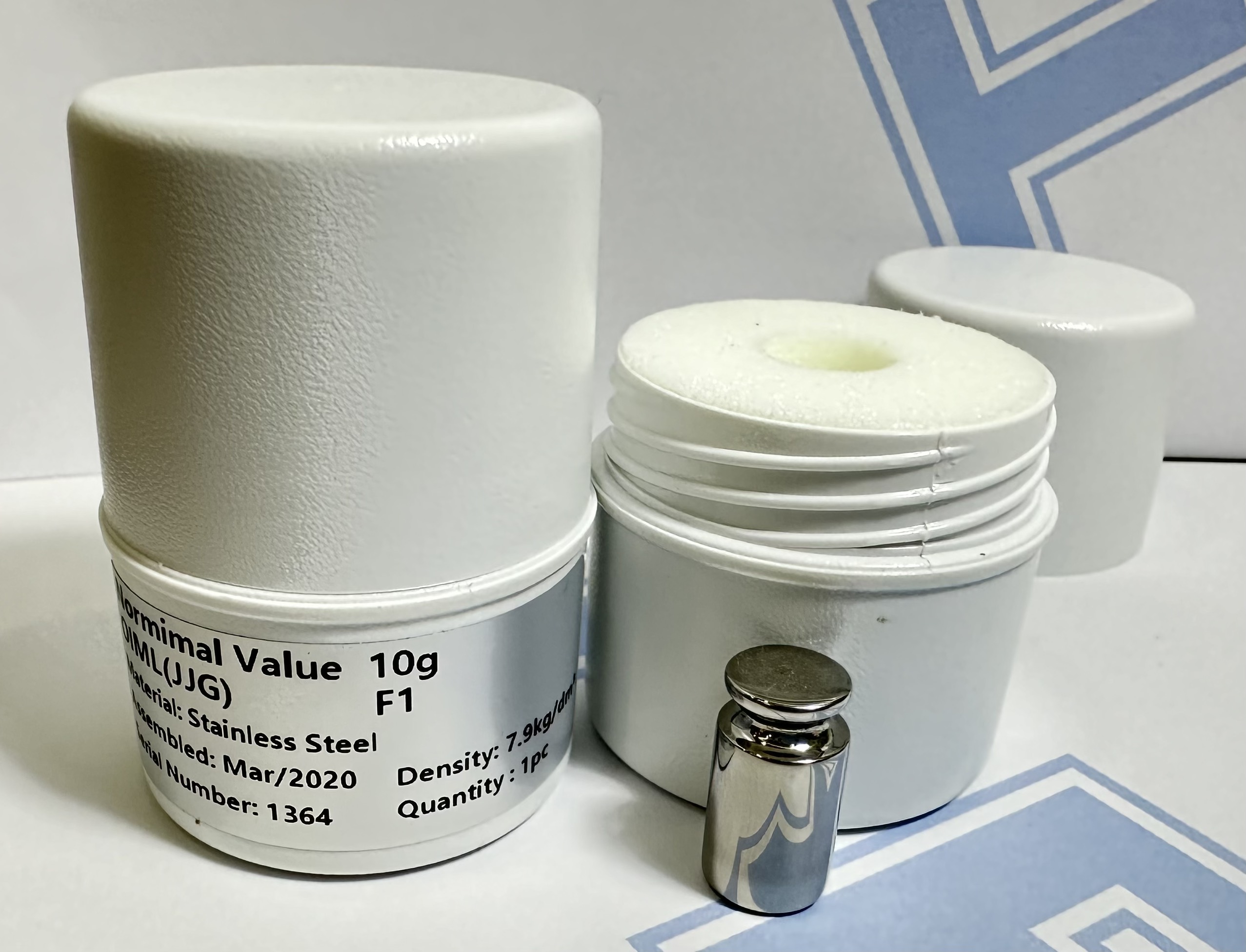 Quả cân F1-10g chất liệu 100% inox 304 (stainless steel weight) có hộp bảo quản, không hốc điều chỉnh, tiêu chuẩn đo lường quốc tế OIML, tiêu chuẩn đo lường Việt Nam ĐLVN 50:2009 Nhập khẩu và phân phối bởi CÔNG TY CỔ PHẦN CÂN ĐIỆN TỬ THỊNH PHÁT có địa chỉ trụ sở chính tại số 57 Đường Nguyễn Văn Thương, Phường 25, Quận Bình Thạnh, TP.Hồ Chí Minh. Quý khách có nhu cầu xin liên hệ điện thoại (028) 62.888.666 di động có Zalo 0915.999.111 hoặc 0908.444.000.