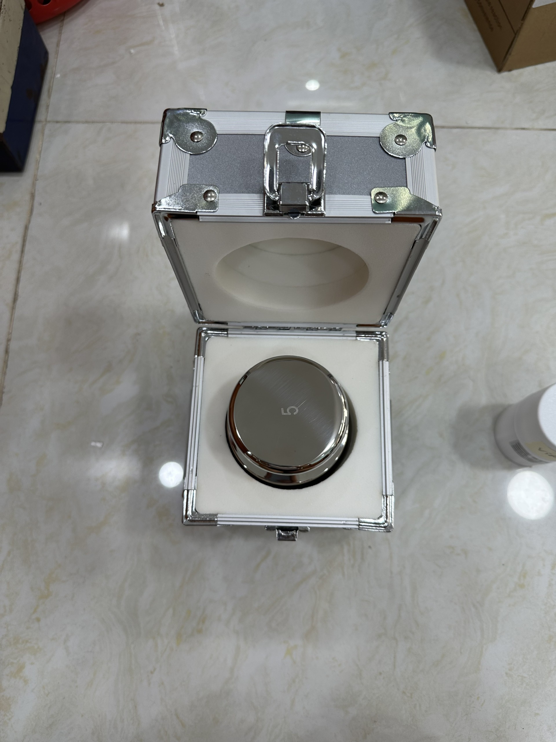Quả cân F1-5kg chất liệu 100% inox 304 (stainless steel weight) có hộp bảo quản, không hốc điều chỉnh, tiêu chuẩn đo lường quốc tế OIML, tiêu chuẩn đo lường Việt Nam ĐLVN 50:2009 Nhập khẩu và phân phối bởi CÔNG TY CỔ PHẦN CÂN ĐIỆN TỬ THỊNH PHÁT có địa chỉ trụ sở chính tại số 57 Đường Nguyễn Văn Thương, Phường 25, Quận Bình Thạnh, TP.Hồ Chí Minh. Quý khách có nhu cầu xin liên hệ điện thoại (028) 62.888.666 di động có Zalo 0915.999.111 hoặc 0908.444.000.
