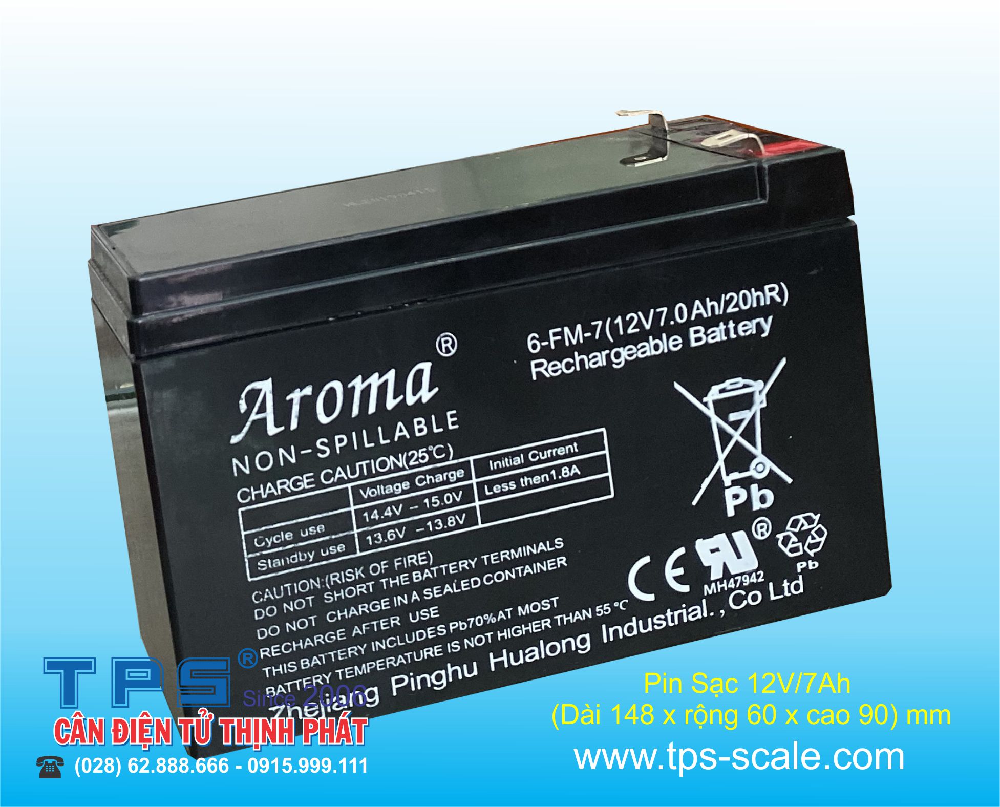 Pin sạc cho cân điện tử 12V/7AH Do HÃNG CÂN ĐIỆN TỬ THỊNH PHÁT có trụ sở chính tại số 57 Đường Nguyễn Văn Thương, Phường 25, Quận Bình Thạnh, TP.Hồ Chí Minh Nhập khẩu và phân phối, quí khách có nhu cầu xin liên hệ điện thoại (028) 62.888.666 di động có zalo 0915.999.111 hoặc 0908.444.000, xin cảm ơn