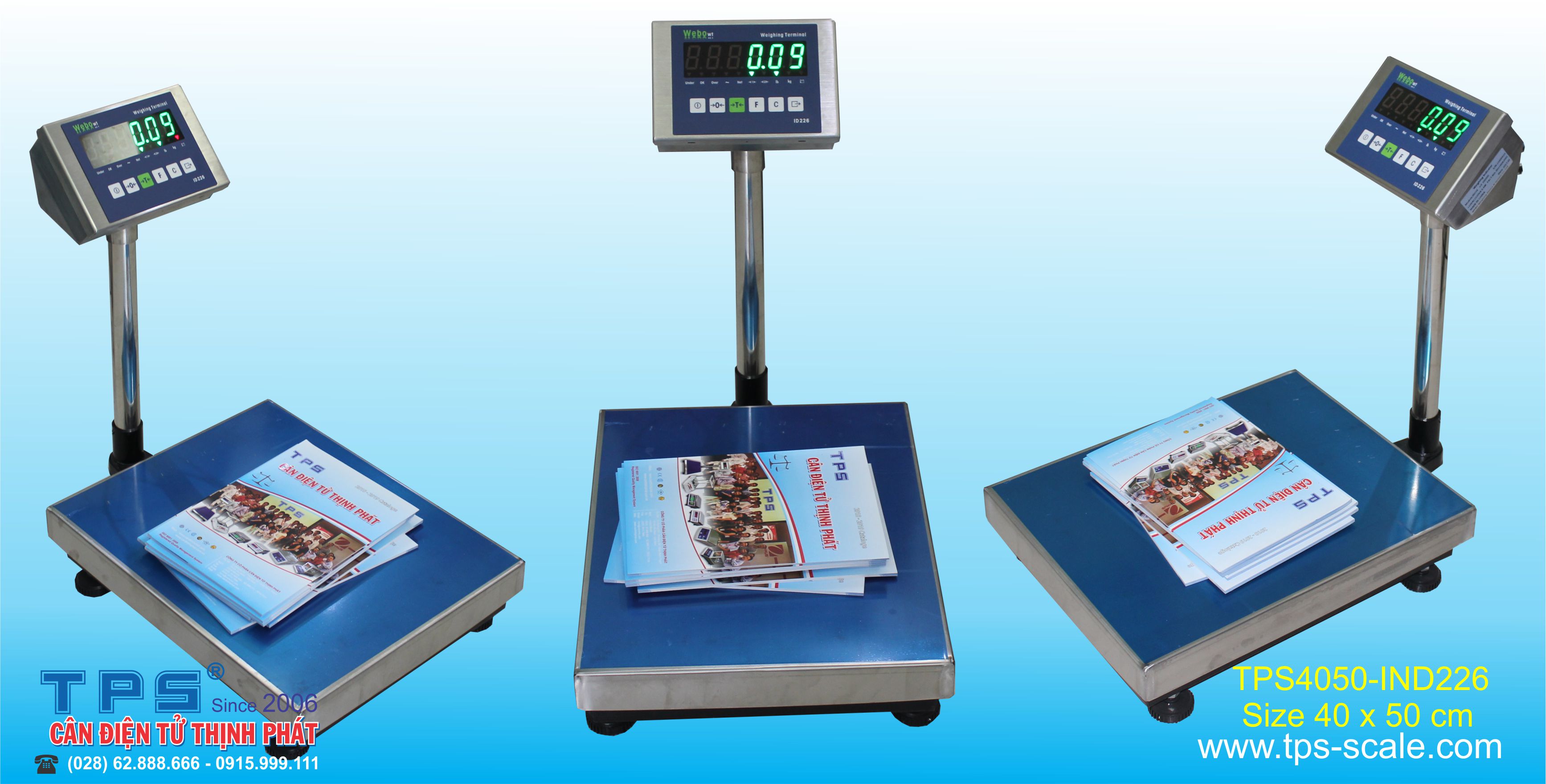- Cân bàn điện tử TPS4050-IND226 Là mẫu cân bàn thông dụng hiện đại do TPS nguyên cứu và lắp ráp, khung bàn cân sử dụng thép chịu lực cao thép vuông ba, được sơn tỉnh điện màu đen bóng chống ăn mòn cao, mặt bàn cân sử dụng inox 304 dày 1 ly dập logo TPS rất dể nhận diện. Cảm ứng lực NA4 do MAVIN sản xuất theo tiêu chuẩn OIMLR60, Bộ chỉ thị do TPS đặt hàng nhà máy sản xuất cho nên sử dụng rất ổn định.